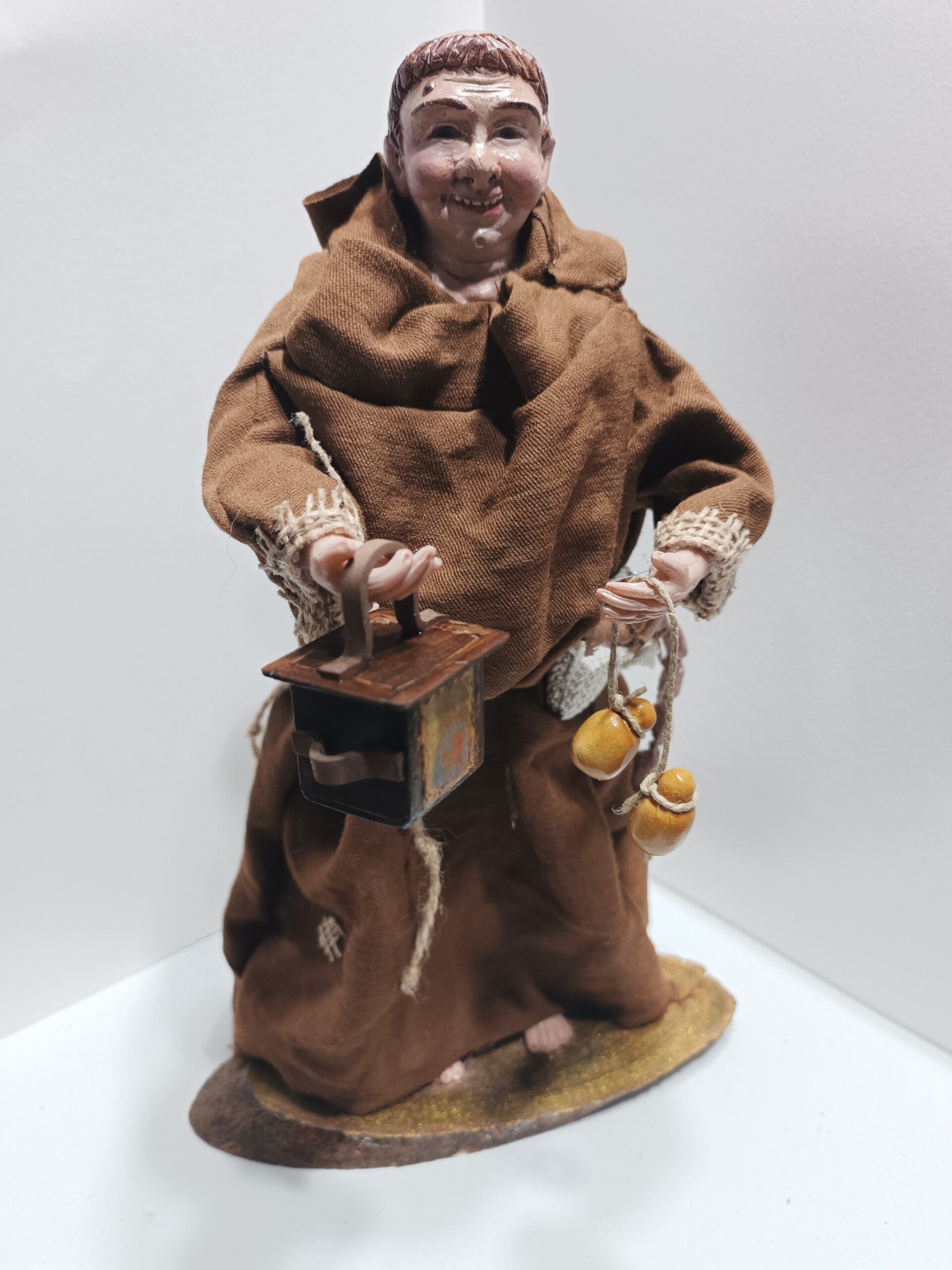 Statuina del Munaciello realizzata interamente a mano, ispirata alla celebre figura del folklore napoletano, simbolo di mistero, protezione e fortuna. Ogni pezzo è unico, modellato e dipinto con attenzione ai dettagli, dalle espressioni del volto ai particolari dell’abito tradizionale. Secondo la tradizione popolare, il Munaciello porta prosperità e buon auspicio a chi lo accoglie in casa. Questa statuina artigianale rappresenta un perfetto connubio tra cultura, superstizione e arte, ideale come oggetto decorativo, regalo simbolico o elemento distintivo per ambienti ricchi di storia e personalità.