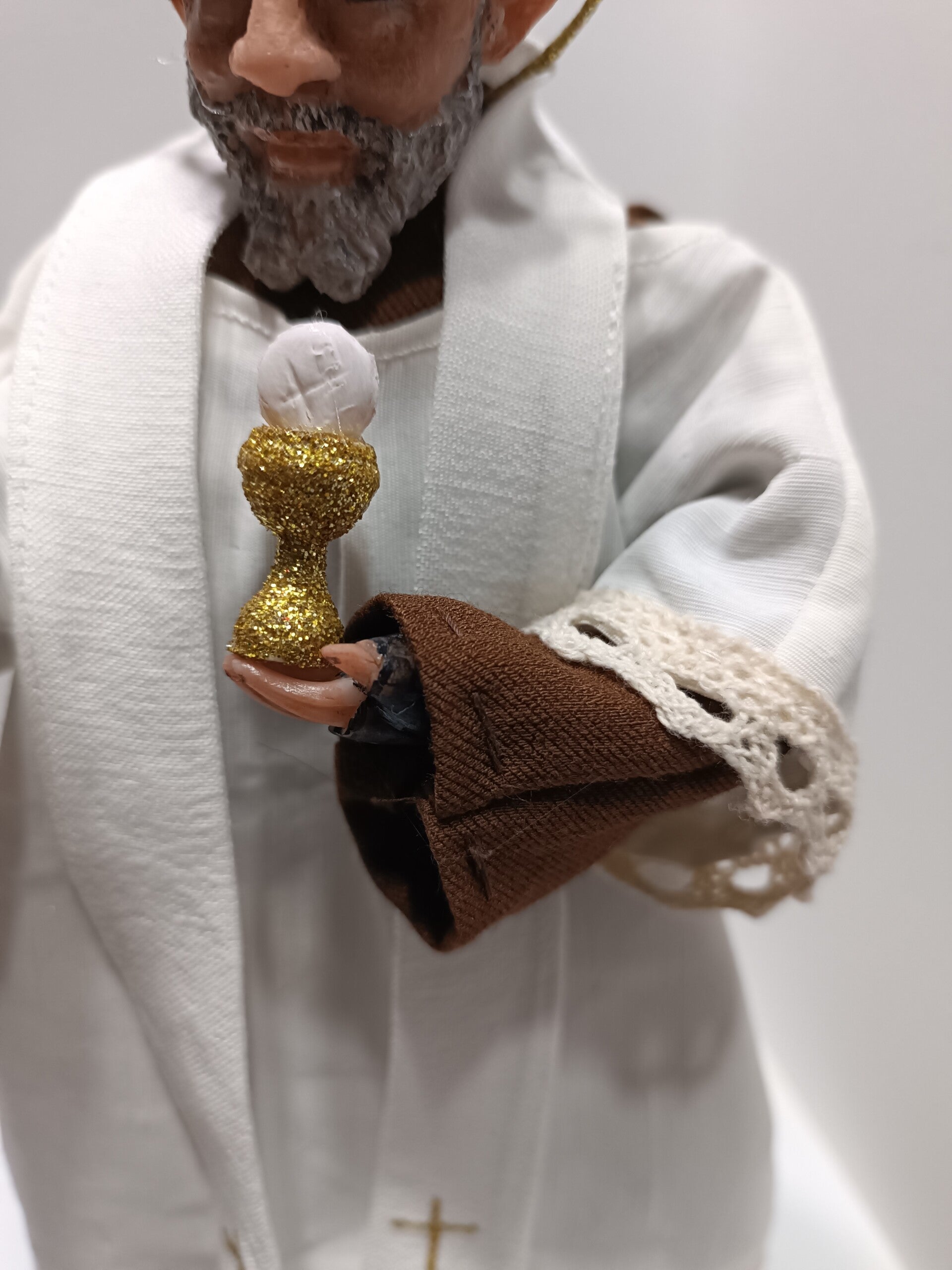 Questa elegante statuina di Padre Pio è realizzata interamente a mano da artigiani esperti, utilizzando materiali di alta qualità che garantiscono resistenza, dettagli accurati e un’estetica raffinata. Ogni pezzo è unico, modellato e dipinto con cura per trasmettere serenità, devozione e spiritualità.